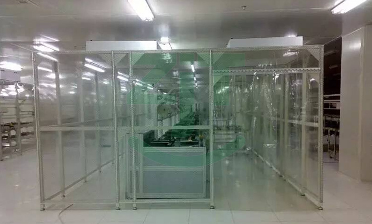 潔凈棚采用工業(yè)鋁材(或不銹鋼方通、鐵方通噴塑)作為框架,風(fēng)機濾網(wǎng)機組(FFU)送風(fēng),四周懸掛防靜電垂簾(或鋼化玻璃),其內(nèi)部凈化級別可達(dá)到100-10000級。適用于操作區(qū)內(nèi)局部凈化級別要求高的區(qū)域。
