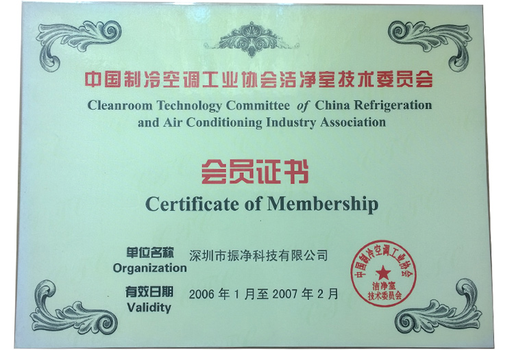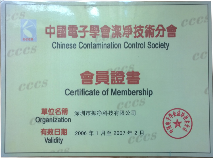 潔凈技術(shù)分會會員證書